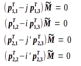 With the previous equation and the definition of the homologous points through their visuals, the following system of equation is obtained, that will be solved through algebraic minimization.